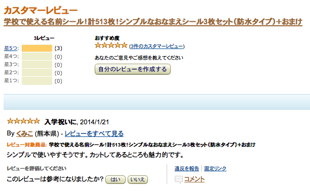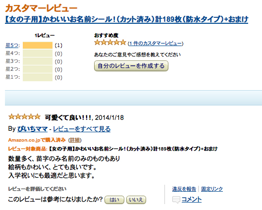 スタッフブログ カスタマーレビューいただきましたっ★★★★★ 2014.01.31 CATEGORY:スタッフブログ みなさんこんにちは。 販促の山本です amazonに出品している「シンプルお名前シール」でカスタマーレビューが追加されました〜! またもや★5つです! ありがとうございます そして「【女の子用】かわいいお名前シール」にも初レビューがつきました! こちらも★5つです!! 本当にありがとうございます。 おかげさまで最近注文がどんどん増えてきています これを糧に今後もよい製品がお届けできるよう精一杯がんばりま〜っす 新着情報 ゴールデンウィーク期間中の休業のお知らせ 下げ札を初めて作る方のための「下げ札入門セット」 RENEW2024開催! インテリアライフスタイル2024 出展ご案内 お客様の声【長野県 M様】 カテゴリ コロナ対策 ここがサカエマーク 企画商品 サカエマークからのお知らせ お客様の声 スタッフブログ アーカイブ 月を選択 2025年4月 (1) 2025年2月 (1) 2024年10月 (1) 2024年6月 (1) 2024年5月 (2) 2024年3月 (1) 2024年2月 (3) 2023年12月 (2) 2023年10月 (6) 2023年9月 (5) 2023年8月 (1) 2023年7月 (2) 2023年6月 (4) 2023年5月 (1) 2023年4月 (3) 2023年3月 (1) 2023年2月 (3) 2022年12月 (3) 2022年11月 (3) 2022年10月 (2) 2022年9月 (1) 2022年8月 (1) 2022年7月 (3) 2022年6月 (3) 2022年4月 (7) 2022年3月 (3) 2022年2月 (1) 2022年1月 (3) 2021年12月 (3) 2021年11月 (3) 2021年10月 (4) 2021年9月 (7) 2021年8月 (8) 2021年7月 (3) 2021年6月 (3) 2021年5月 (5) 2021年4月 (5) 2021年3月 (1) 2021年2月 (9) 2020年12月 (5) 2020年11月 (2) 2020年10月 (6) 2020年8月 (4) 2020年7月 (3) 2020年6月 (3) 2020年4月 (3) 2020年3月 (3) 2020年2月 (1) 2020年1月 (2) 2019年12月 (4) 2019年10月 (3) 2019年9月 (4) 2019年7月 (3) 2019年6月 (6) 2019年5月 (1) 2019年4月 (4) 2019年3月 (1) 2019年2月 (4) 2019年1月 (3) 2018年12月 (9) 2018年11月 (5) 2018年10月 (3) 2018年9月 (3) 2018年8月 (4) 2018年7月 (5) 2018年6月 (92) 2018年5月 (3) 2018年4月 (3) 2018年3月 (2) 2018年2月 (2) 2018年1月 (2) 2017年12月 (1) 2017年11月 (1) 2017年10月 (3) 2017年9月 (5) 2017年8月 (4) 2017年7月 (3) 2017年6月 (3) 2017年5月 (3) 2017年4月 (1) 2017年3月 (2) 2017年1月 (1) 2016年12月 (2) 2016年11月 (1) 2016年10月 (1) 2016年9月 (2) 2016年8月 (2) 2016年7月 (3) 2016年6月 (3) 2016年5月 (4) 2016年4月 (4) 2016年3月 (2) 2016年2月 (2) 2016年1月 (3) 2015年12月 (3) 2015年11月 (2) 2015年10月 (2) 2015年9月 (2) 2015年8月 (2) 2015年7月 (4) 2015年6月 (1) 2015年5月 (2) 2015年4月 (2) 2015年3月 (3) 2015年2月 (3) 2015年1月 (6) 2014年12月 (14) 2014年11月 (13) 2014年10月 (13) 2014年9月 (10) 2014年8月 (6) 2014年7月 (16) 2014年6月 (14) 2014年5月 (9) 2014年4月 (16) 2014年3月 (15) 2014年2月 (14) 2014年1月 (13) 2013年12月 (13) 2013年11月 (16) 2013年10月 (16) 2013年9月 (17) 2013年8月 (12) 2013年7月 (17) 2013年6月 (15) 2013年5月 (16) 2013年4月 (15) 2013年3月 (16) 2013年2月 (9) 2012年12月 (8) 2012年11月 (4) 2012年10月 (5) 2012年9月 (2) 2012年8月 (3) 2012年7月 (4) 2012年6月 (3) 2012年5月 (6) 2012年4月 (6) 2012年3月 (9) 2012年2月 (3) 2012年1月 (8) 2011年12月 (9) 2011年11月 (15) 2011年10月 (20) 2011年9月 (22) 2011年8月 (23) 2011年7月 (20) 2011年6月 (2) 2011年5月 (3) 2011年4月 (1) 2011年3月 (3) 2011年2月 (3) 2011年1月 (3) 2010年12月 (5) 2010年11月 (7) 2010年10月 (11) 2010年8月 (1) 2010年7月 (4) 2010年6月 (2) 2010年5月 (2) 2010年4月 (4) 2010年3月 (1) 記事検索