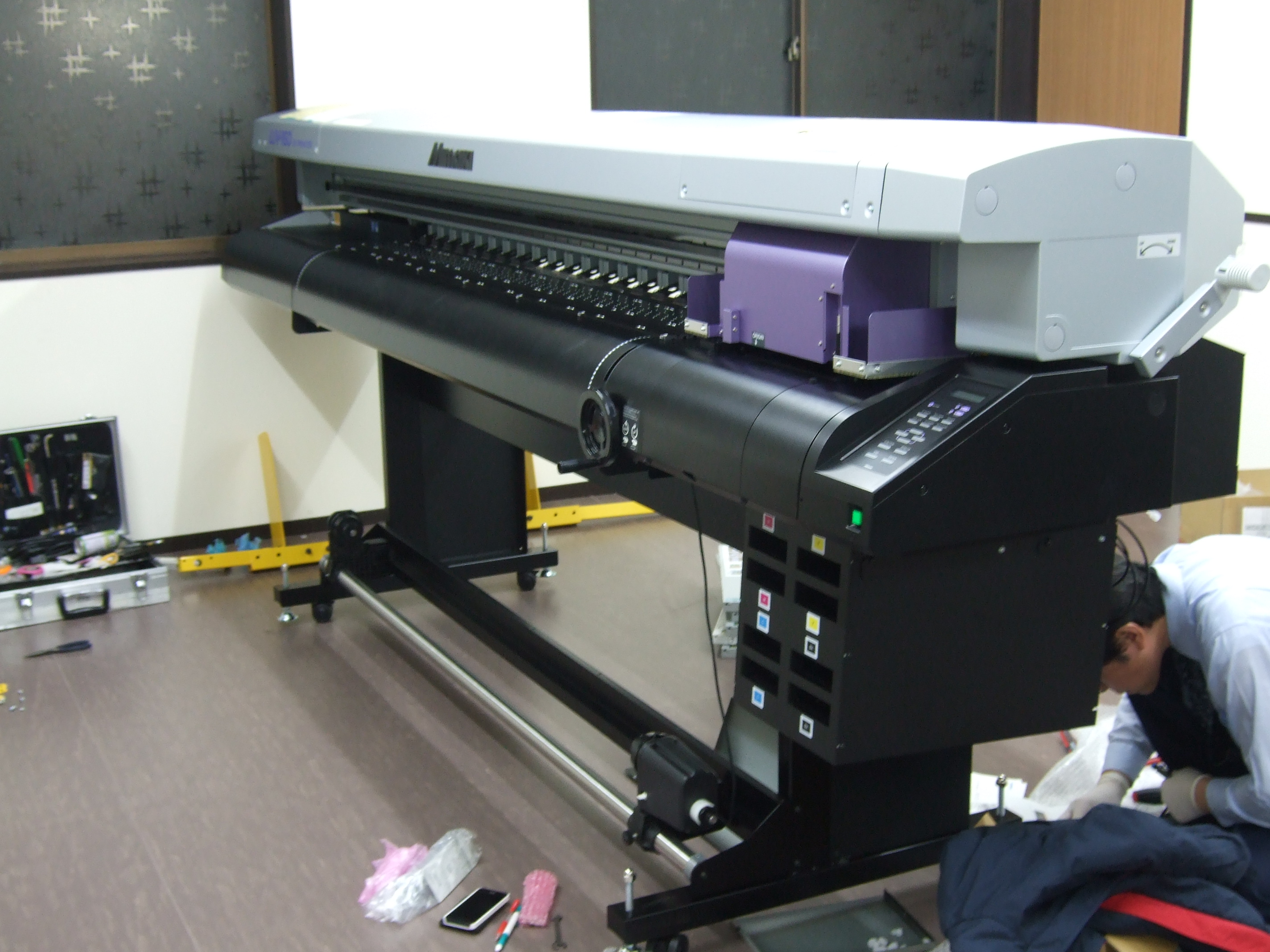 大型のUVインクジェットプリンターと…