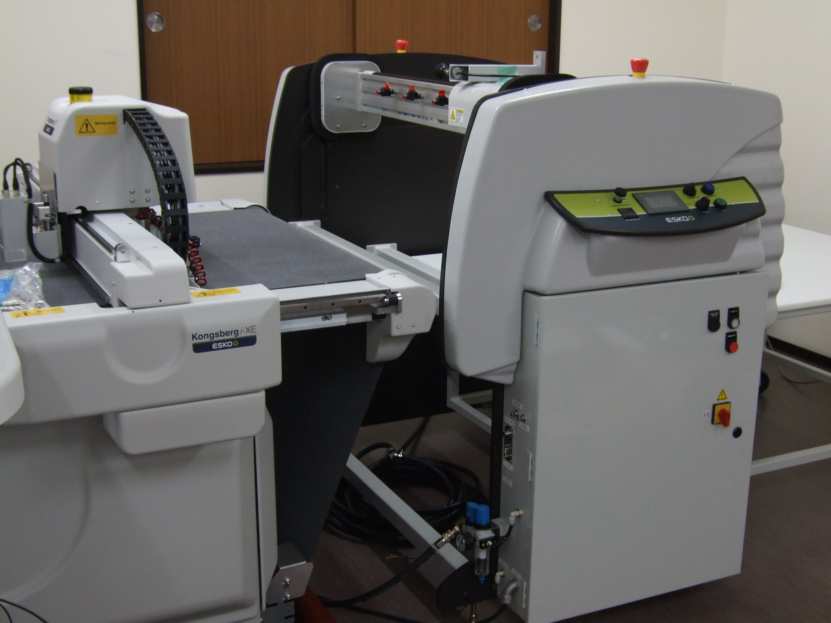 プロッターは今まで使っていた平面プロッター、ロールプロッターよりも厚いものがカットでき、しかも給紙まで自動です![]()