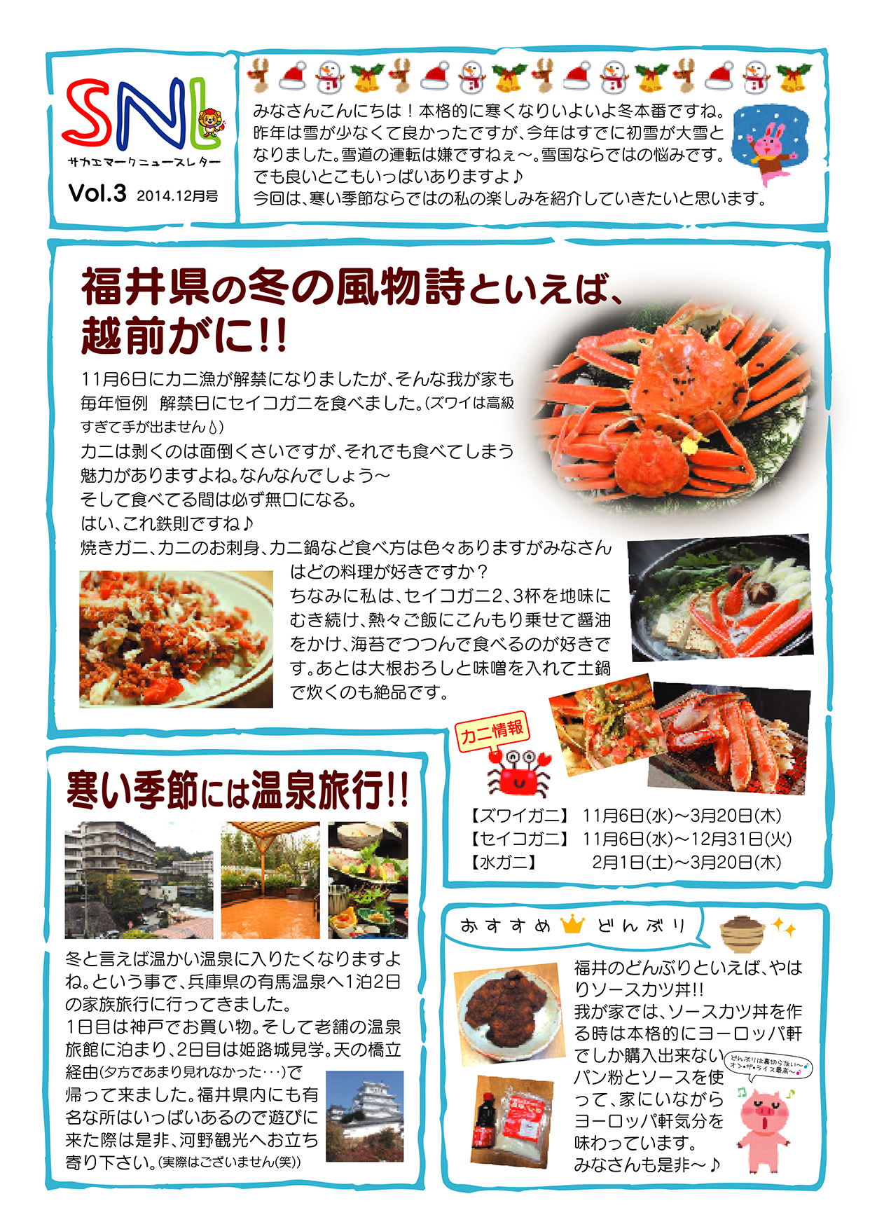 スタッフブログ ニュースレター第3号 2014.12.10 CATEGORY:スタッフブログ みなさんこんにちは。 ここ最近気温が下がって毎日寒いですね〜 みなさん風邪を引かないように気をつけてくださいね さて、おまたせしましたっ! 毎月10日は〜!? 「せ〜のっ、SNLの日!」 ありがとうございます。 というわけでサカエマークニュースレター第3号です。 やっぱり冬の福井といえば蟹ですね! みなさんはもう食べましたか? さて、このニュースレータですが、お客様になかなか好評のようです。(社長談) 次回もがんばりますのでお楽しみに〜 新着情報 ゴールデンウィーク期間中の休業のお知らせ 下げ札を初めて作る方のための「下げ札入門セット」 RENEW2024開催! インテリアライフスタイル2024 出展ご案内 お客様の声【長野県 M様】 カテゴリ コロナ対策 ここがサカエマーク 企画商品 サカエマークからのお知らせ お客様の声 スタッフブログ アーカイブ 月を選択 2025年4月 (1) 2025年2月 (1) 2024年10月 (1) 2024年6月 (1) 2024年5月 (2) 2024年3月 (1) 2024年2月 (3) 2023年12月 (2) 2023年10月 (6) 2023年9月 (5) 2023年8月 (1) 2023年7月 (2) 2023年6月 (4) 2023年5月 (1) 2023年4月 (3) 2023年3月 (1) 2023年2月 (3) 2022年12月 (3) 2022年11月 (3) 2022年10月 (2) 2022年9月 (1) 2022年8月 (1) 2022年7月 (3) 2022年6月 (3) 2022年4月 (7) 2022年3月 (3) 2022年2月 (1) 2022年1月 (3) 2021年12月 (3) 2021年11月 (3) 2021年10月 (4) 2021年9月 (7) 2021年8月 (8) 2021年7月 (3) 2021年6月 (3) 2021年5月 (5) 2021年4月 (5) 2021年3月 (1) 2021年2月 (9) 2020年12月 (5) 2020年11月 (2) 2020年10月 (6) 2020年8月 (4) 2020年7月 (3) 2020年6月 (3) 2020年4月 (3) 2020年3月 (3) 2020年2月 (1) 2020年1月 (2) 2019年12月 (4) 2019年10月 (3) 2019年9月 (4) 2019年7月 (3) 2019年6月 (6) 2019年5月 (1) 2019年4月 (4) 2019年3月 (1) 2019年2月 (4) 2019年1月 (3) 2018年12月 (9) 2018年11月 (5) 2018年10月 (3) 2018年9月 (3) 2018年8月 (4) 2018年7月 (5) 2018年6月 (92) 2018年5月 (3) 2018年4月 (3) 2018年3月 (2) 2018年2月 (2) 2018年1月 (2) 2017年12月 (1) 2017年11月 (1) 2017年10月 (3) 2017年9月 (5) 2017年8月 (4) 2017年7月 (3) 2017年6月 (3) 2017年5月 (3) 2017年4月 (1) 2017年3月 (2) 2017年1月 (1) 2016年12月 (2) 2016年11月 (1) 2016年10月 (1) 2016年9月 (2) 2016年8月 (2) 2016年7月 (3) 2016年6月 (3) 2016年5月 (4) 2016年4月 (4) 2016年3月 (2) 2016年2月 (2) 2016年1月 (3) 2015年12月 (3) 2015年11月 (2) 2015年10月 (2) 2015年9月 (2) 2015年8月 (2) 2015年7月 (4) 2015年6月 (1) 2015年5月 (2) 2015年4月 (2) 2015年3月 (3) 2015年2月 (3) 2015年1月 (6) 2014年12月 (14) 2014年11月 (13) 2014年10月 (13) 2014年9月 (10) 2014年8月 (6) 2014年7月 (16) 2014年6月 (14) 2014年5月 (9) 2014年4月 (16) 2014年3月 (15) 2014年2月 (14) 2014年1月 (13) 2013年12月 (13) 2013年11月 (16) 2013年10月 (16) 2013年9月 (17) 2013年8月 (12) 2013年7月 (17) 2013年6月 (15) 2013年5月 (16) 2013年4月 (15) 2013年3月 (16) 2013年2月 (9) 2012年12月 (8) 2012年11月 (4) 2012年10月 (5) 2012年9月 (2) 2012年8月 (3) 2012年7月 (4) 2012年6月 (3) 2012年5月 (6) 2012年4月 (6) 2012年3月 (9) 2012年2月 (3) 2012年1月 (8) 2011年12月 (9) 2011年11月 (15) 2011年10月 (20) 2011年9月 (22) 2011年8月 (23) 2011年7月 (20) 2011年6月 (2) 2011年5月 (3) 2011年4月 (1) 2011年3月 (3) 2011年2月 (3) 2011年1月 (3) 2010年12月 (5) 2010年11月 (7) 2010年10月 (11) 2010年8月 (1) 2010年7月 (4) 2010年6月 (2) 2010年5月 (2) 2010年4月 (4) 2010年3月 (1) 記事検索