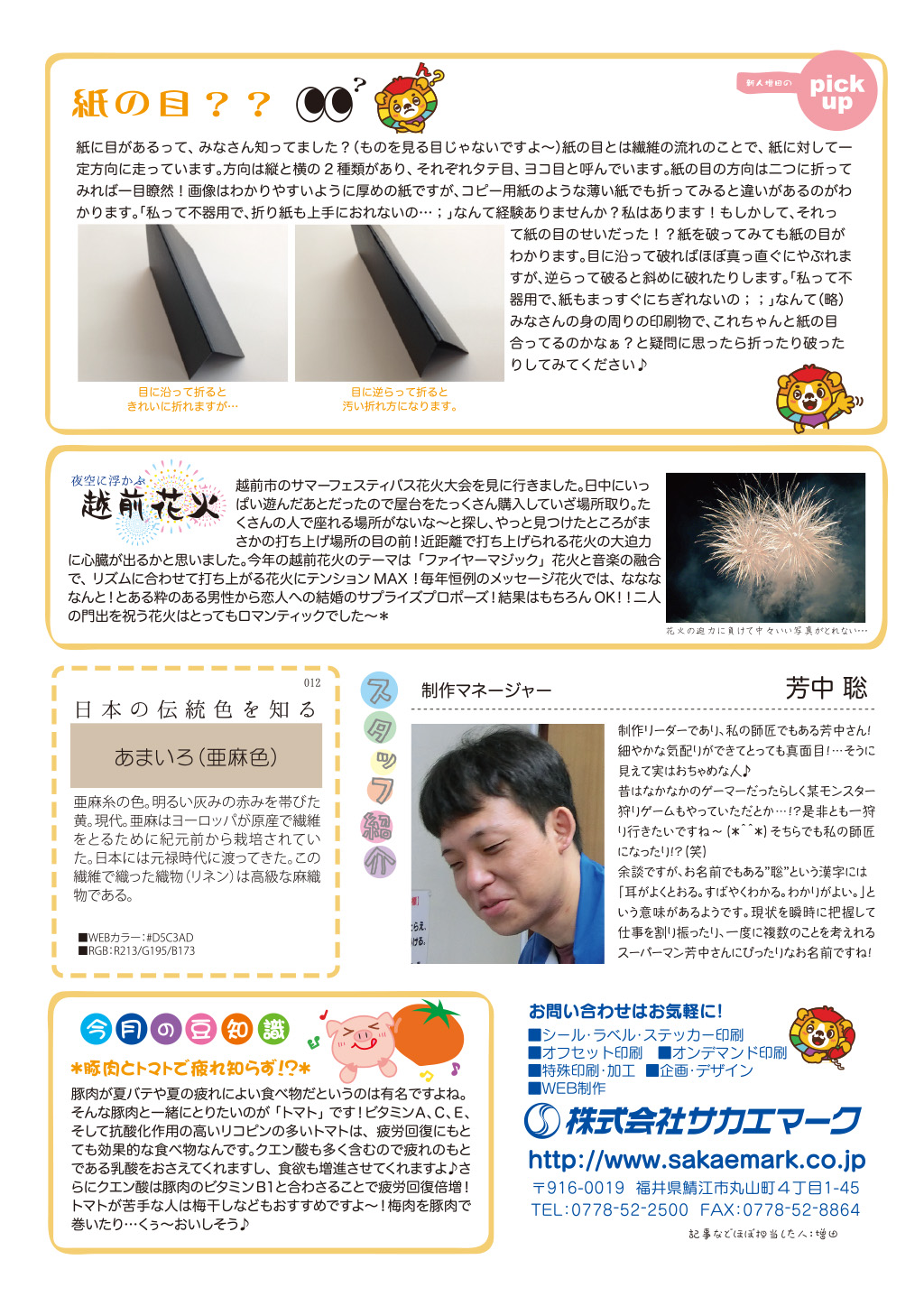 スタッフブログ ニュースレター第12号 2015.09.07 CATEGORY:スタッフブログ みなさんこんにちは! おまたせしました!SNL12号です! このニューレターを発刊してついに丸1年が経ちました。 当初は続くんだろうか…という不安もありましたがいつも楽しみにしているとの声を聞き、今号までがんばってこれました。 これからも皆様の温かい温かいご支援よろしくお願いしま〜す 新着情報 ゴールデンウィーク期間中の休業のお知らせ 下げ札を初めて作る方のための「下げ札入門セット」 RENEW2024開催! インテリアライフスタイル2024 出展ご案内 お客様の声【長野県 M様】 カテゴリ コロナ対策 ここがサカエマーク 企画商品 サカエマークからのお知らせ お客様の声 スタッフブログ アーカイブ 月を選択 2025年4月 (1) 2025年2月 (1) 2024年10月 (1) 2024年6月 (1) 2024年5月 (2) 2024年3月 (1) 2024年2月 (3) 2023年12月 (2) 2023年10月 (6) 2023年9月 (5) 2023年8月 (1) 2023年7月 (2) 2023年6月 (4) 2023年5月 (1) 2023年4月 (3) 2023年3月 (1) 2023年2月 (3) 2022年12月 (3) 2022年11月 (3) 2022年10月 (2) 2022年9月 (1) 2022年8月 (1) 2022年7月 (3) 2022年6月 (3) 2022年4月 (7) 2022年3月 (3) 2022年2月 (1) 2022年1月 (3) 2021年12月 (3) 2021年11月 (3) 2021年10月 (4) 2021年9月 (7) 2021年8月 (8) 2021年7月 (3) 2021年6月 (3) 2021年5月 (5) 2021年4月 (5) 2021年3月 (1) 2021年2月 (9) 2020年12月 (5) 2020年11月 (2) 2020年10月 (6) 2020年8月 (4) 2020年7月 (3) 2020年6月 (3) 2020年4月 (3) 2020年3月 (3) 2020年2月 (1) 2020年1月 (2) 2019年12月 (4) 2019年10月 (3) 2019年9月 (4) 2019年7月 (3) 2019年6月 (6) 2019年5月 (1) 2019年4月 (4) 2019年3月 (1) 2019年2月 (4) 2019年1月 (3) 2018年12月 (9) 2018年11月 (5) 2018年10月 (3) 2018年9月 (3) 2018年8月 (4) 2018年7月 (5) 2018年6月 (92) 2018年5月 (3) 2018年4月 (3) 2018年3月 (2) 2018年2月 (2) 2018年1月 (2) 2017年12月 (1) 2017年11月 (1) 2017年10月 (3) 2017年9月 (5) 2017年8月 (4) 2017年7月 (3) 2017年6月 (3) 2017年5月 (3) 2017年4月 (1) 2017年3月 (2) 2017年1月 (1) 2016年12月 (2) 2016年11月 (1) 2016年10月 (1) 2016年9月 (2) 2016年8月 (2) 2016年7月 (3) 2016年6月 (3) 2016年5月 (4) 2016年4月 (4) 2016年3月 (2) 2016年2月 (2) 2016年1月 (3) 2015年12月 (3) 2015年11月 (2) 2015年10月 (2) 2015年9月 (2) 2015年8月 (2) 2015年7月 (4) 2015年6月 (1) 2015年5月 (2) 2015年4月 (2) 2015年3月 (3) 2015年2月 (3) 2015年1月 (6) 2014年12月 (14) 2014年11月 (13) 2014年10月 (13) 2014年9月 (10) 2014年8月 (6) 2014年7月 (16) 2014年6月 (14) 2014年5月 (9) 2014年4月 (16) 2014年3月 (15) 2014年2月 (14) 2014年1月 (13) 2013年12月 (13) 2013年11月 (16) 2013年10月 (16) 2013年9月 (17) 2013年8月 (12) 2013年7月 (17) 2013年6月 (15) 2013年5月 (16) 2013年4月 (15) 2013年3月 (16) 2013年2月 (9) 2012年12月 (8) 2012年11月 (4) 2012年10月 (5) 2012年9月 (2) 2012年8月 (3) 2012年7月 (4) 2012年6月 (3) 2012年5月 (6) 2012年4月 (6) 2012年3月 (9) 2012年2月 (3) 2012年1月 (8) 2011年12月 (9) 2011年11月 (15) 2011年10月 (20) 2011年9月 (22) 2011年8月 (23) 2011年7月 (20) 2011年6月 (2) 2011年5月 (3) 2011年4月 (1) 2011年3月 (3) 2011年2月 (3) 2011年1月 (3) 2010年12月 (5) 2010年11月 (7) 2010年10月 (11) 2010年8月 (1) 2010年7月 (4) 2010年6月 (2) 2010年5月 (2) 2010年4月 (4) 2010年3月 (1) 記事検索