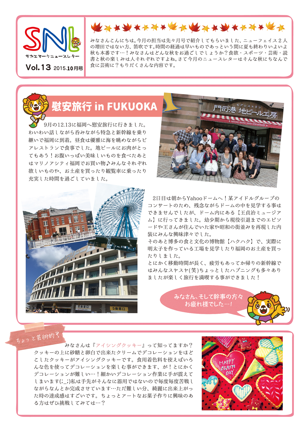 スタッフブログ ニュースレター第13号 2015.10.07 CATEGORY:スタッフブログ みなさんこんにちは! 更新が遅れてしまってスミマセン…お待ちかねのニュースレーター10月号です! 今回は制作のアイドル笛吹さんが担当です。はりきってどうぞぉ〜 旅行ではみんな美味しいものを食べたり、お買い物をしたりと充実した2日間を過ごしました。 次回の慰安旅行も楽しみです! ではまたっ 新着情報 ゴールデンウィーク期間中の休業のお知らせ 下げ札を初めて作る方のための「下げ札入門セット」 RENEW2024開催! インテリアライフスタイル2024 出展ご案内 お客様の声【長野県 M様】 カテゴリ コロナ対策 ここがサカエマーク 企画商品 サカエマークからのお知らせ お客様の声 スタッフブログ アーカイブ 月を選択 2025年4月 (1) 2025年2月 (1) 2024年10月 (1) 2024年6月 (1) 2024年5月 (2) 2024年3月 (1) 2024年2月 (3) 2023年12月 (2) 2023年10月 (6) 2023年9月 (5) 2023年8月 (1) 2023年7月 (2) 2023年6月 (4) 2023年5月 (1) 2023年4月 (3) 2023年3月 (1) 2023年2月 (3) 2022年12月 (3) 2022年11月 (3) 2022年10月 (2) 2022年9月 (1) 2022年8月 (1) 2022年7月 (3) 2022年6月 (3) 2022年4月 (7) 2022年3月 (3) 2022年2月 (1) 2022年1月 (3) 2021年12月 (3) 2021年11月 (3) 2021年10月 (4) 2021年9月 (7) 2021年8月 (8) 2021年7月 (3) 2021年6月 (3) 2021年5月 (5) 2021年4月 (5) 2021年3月 (1) 2021年2月 (9) 2020年12月 (5) 2020年11月 (2) 2020年10月 (6) 2020年8月 (4) 2020年7月 (3) 2020年6月 (3) 2020年4月 (3) 2020年3月 (3) 2020年2月 (1) 2020年1月 (2) 2019年12月 (4) 2019年10月 (3) 2019年9月 (4) 2019年7月 (3) 2019年6月 (6) 2019年5月 (1) 2019年4月 (4) 2019年3月 (1) 2019年2月 (4) 2019年1月 (3) 2018年12月 (9) 2018年11月 (5) 2018年10月 (3) 2018年9月 (3) 2018年8月 (4) 2018年7月 (5) 2018年6月 (92) 2018年5月 (3) 2018年4月 (3) 2018年3月 (2) 2018年2月 (2) 2018年1月 (2) 2017年12月 (1) 2017年11月 (1) 2017年10月 (3) 2017年9月 (5) 2017年8月 (4) 2017年7月 (3) 2017年6月 (3) 2017年5月 (3) 2017年4月 (1) 2017年3月 (2) 2017年1月 (1) 2016年12月 (2) 2016年11月 (1) 2016年10月 (1) 2016年9月 (2) 2016年8月 (2) 2016年7月 (3) 2016年6月 (3) 2016年5月 (4) 2016年4月 (4) 2016年3月 (2) 2016年2月 (2) 2016年1月 (3) 2015年12月 (3) 2015年11月 (2) 2015年10月 (2) 2015年9月 (2) 2015年8月 (2) 2015年7月 (4) 2015年6月 (1) 2015年5月 (2) 2015年4月 (2) 2015年3月 (3) 2015年2月 (3) 2015年1月 (6) 2014年12月 (14) 2014年11月 (13) 2014年10月 (13) 2014年9月 (10) 2014年8月 (6) 2014年7月 (16) 2014年6月 (14) 2014年5月 (9) 2014年4月 (16) 2014年3月 (15) 2014年2月 (14) 2014年1月 (13) 2013年12月 (13) 2013年11月 (16) 2013年10月 (16) 2013年9月 (17) 2013年8月 (12) 2013年7月 (17) 2013年6月 (15) 2013年5月 (16) 2013年4月 (15) 2013年3月 (16) 2013年2月 (9) 2012年12月 (8) 2012年11月 (4) 2012年10月 (5) 2012年9月 (2) 2012年8月 (3) 2012年7月 (4) 2012年6月 (3) 2012年5月 (6) 2012年4月 (6) 2012年3月 (9) 2012年2月 (3) 2012年1月 (8) 2011年12月 (9) 2011年11月 (15) 2011年10月 (20) 2011年9月 (22) 2011年8月 (23) 2011年7月 (20) 2011年6月 (2) 2011年5月 (3) 2011年4月 (1) 2011年3月 (3) 2011年2月 (3) 2011年1月 (3) 2010年12月 (5) 2010年11月 (7) 2010年10月 (11) 2010年8月 (1) 2010年7月 (4) 2010年6月 (2) 2010年5月 (2) 2010年4月 (4) 2010年3月 (1) 記事検索