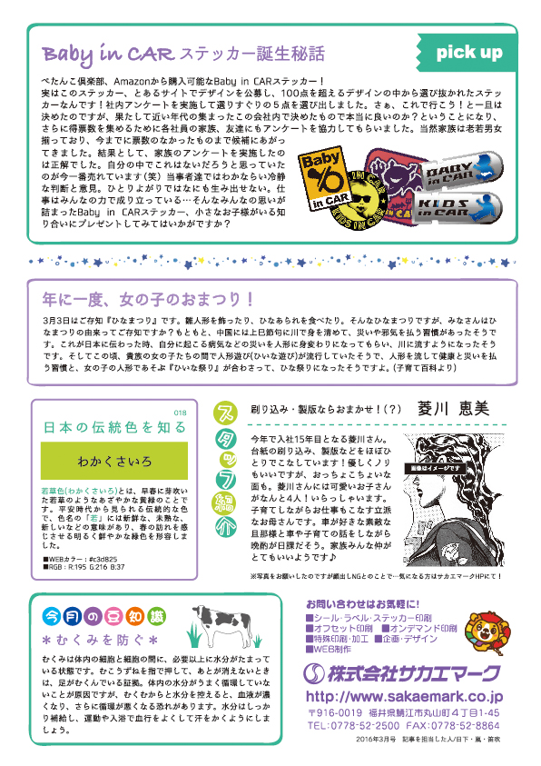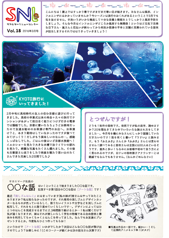 スタッフブログ ニュースレター第18号 2016.03.04 CATEGORY:スタッフブログ みなさんこんにちわ!制作の増田です お昼時間になるとぽかぽか気持ちよくて、春の気配を感じる今日この頃ですね(^ ^) 花粉の季節も近づいてきてマスクとティッシュが手放せなくなる人もいるのではないでしょうか。 さてさて、今月もやってまいりましたニュースレターのお時間です! 今月はちょっと芸術的!?それでは、はりきってどうぞ〜 水族館の綺麗な写真に心癒されますね〜 笛吹さんのお名前も、もう間違える心配はなさそうですね それでは!来月は増田が記者になって皆様にニュースをお届けしま〜す 新着情報 ゴールデンウィーク期間中の休業のお知らせ 下げ札を初めて作る方のための「下げ札入門セット」 RENEW2024開催! インテリアライフスタイル2024 出展ご案内 お客様の声【長野県 M様】 カテゴリ コロナ対策 ここがサカエマーク 企画商品 サカエマークからのお知らせ お客様の声 スタッフブログ アーカイブ 月を選択 2025年4月 (1) 2025年2月 (1) 2024年10月 (1) 2024年6月 (1) 2024年5月 (2) 2024年3月 (1) 2024年2月 (3) 2023年12月 (2) 2023年10月 (6) 2023年9月 (5) 2023年8月 (1) 2023年7月 (2) 2023年6月 (4) 2023年5月 (1) 2023年4月 (3) 2023年3月 (1) 2023年2月 (3) 2022年12月 (3) 2022年11月 (3) 2022年10月 (2) 2022年9月 (1) 2022年8月 (1) 2022年7月 (3) 2022年6月 (3) 2022年4月 (7) 2022年3月 (3) 2022年2月 (1) 2022年1月 (3) 2021年12月 (3) 2021年11月 (3) 2021年10月 (4) 2021年9月 (7) 2021年8月 (8) 2021年7月 (3) 2021年6月 (3) 2021年5月 (5) 2021年4月 (5) 2021年3月 (1) 2021年2月 (9) 2020年12月 (5) 2020年11月 (2) 2020年10月 (6) 2020年8月 (4) 2020年7月 (3) 2020年6月 (3) 2020年4月 (3) 2020年3月 (3) 2020年2月 (1) 2020年1月 (2) 2019年12月 (4) 2019年10月 (3) 2019年9月 (4) 2019年7月 (3) 2019年6月 (6) 2019年5月 (1) 2019年4月 (4) 2019年3月 (1) 2019年2月 (4) 2019年1月 (3) 2018年12月 (9) 2018年11月 (5) 2018年10月 (3) 2018年9月 (3) 2018年8月 (4) 2018年7月 (5) 2018年6月 (92) 2018年5月 (3) 2018年4月 (3) 2018年3月 (2) 2018年2月 (2) 2018年1月 (2) 2017年12月 (1) 2017年11月 (1) 2017年10月 (3) 2017年9月 (5) 2017年8月 (4) 2017年7月 (3) 2017年6月 (3) 2017年5月 (3) 2017年4月 (1) 2017年3月 (2) 2017年1月 (1) 2016年12月 (2) 2016年11月 (1) 2016年10月 (1) 2016年9月 (2) 2016年8月 (2) 2016年7月 (3) 2016年6月 (3) 2016年5月 (4) 2016年4月 (4) 2016年3月 (2) 2016年2月 (2) 2016年1月 (3) 2015年12月 (3) 2015年11月 (2) 2015年10月 (2) 2015年9月 (2) 2015年8月 (2) 2015年7月 (4) 2015年6月 (1) 2015年5月 (2) 2015年4月 (2) 2015年3月 (3) 2015年2月 (3) 2015年1月 (6) 2014年12月 (14) 2014年11月 (13) 2014年10月 (13) 2014年9月 (10) 2014年8月 (6) 2014年7月 (16) 2014年6月 (14) 2014年5月 (9) 2014年4月 (16) 2014年3月 (15) 2014年2月 (14) 2014年1月 (13) 2013年12月 (13) 2013年11月 (16) 2013年10月 (16) 2013年9月 (17) 2013年8月 (12) 2013年7月 (17) 2013年6月 (15) 2013年5月 (16) 2013年4月 (15) 2013年3月 (16) 2013年2月 (9) 2012年12月 (8) 2012年11月 (4) 2012年10月 (5) 2012年9月 (2) 2012年8月 (3) 2012年7月 (4) 2012年6月 (3) 2012年5月 (6) 2012年4月 (6) 2012年3月 (9) 2012年2月 (3) 2012年1月 (8) 2011年12月 (9) 2011年11月 (15) 2011年10月 (20) 2011年9月 (22) 2011年8月 (23) 2011年7月 (20) 2011年6月 (2) 2011年5月 (3) 2011年4月 (1) 2011年3月 (3) 2011年2月 (3) 2011年1月 (3) 2010年12月 (5) 2010年11月 (7) 2010年10月 (11) 2010年8月 (1) 2010年7月 (4) 2010年6月 (2) 2010年5月 (2) 2010年4月 (4) 2010年3月 (1) 記事検索
