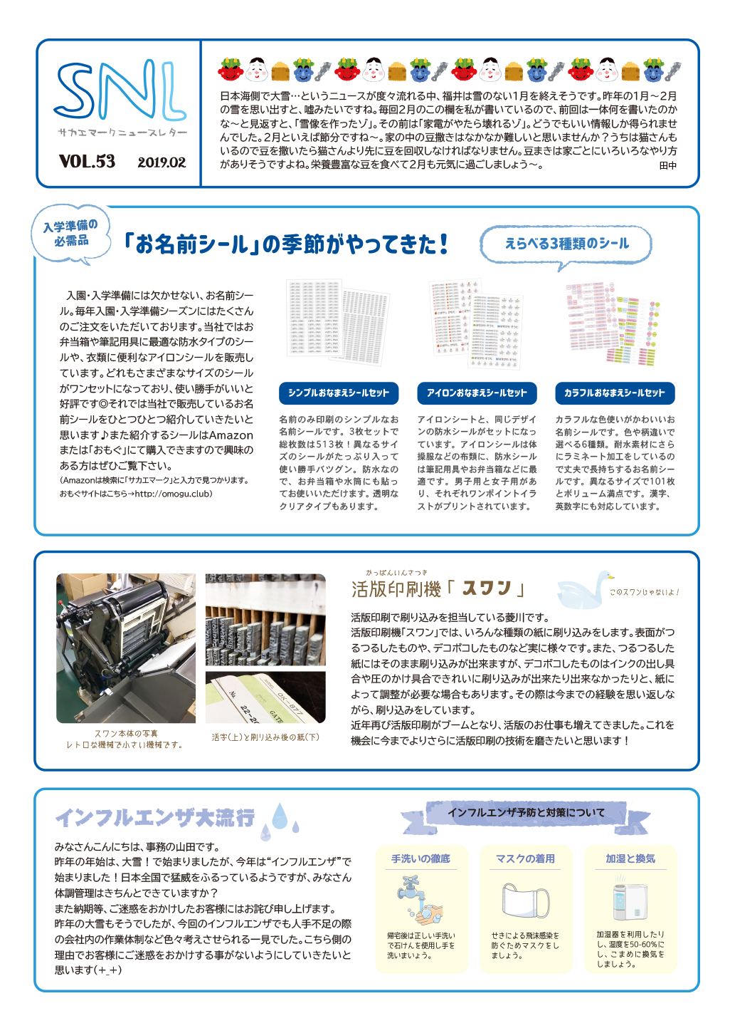 スタッフブログ ニュースレター第53号 2019.02.01 CATEGORY:スタッフブログ みなさんこんにちは! 暖冬の影響か福井はわりと雪の少ない日々を送っております。 このまま春までキープしてほしいものです😌 それでは2月のニュースレターでっす! ここでお知らせです💡 長らくご愛読いただいておりましたサカエマークニュースレターですが、あと数回で終了することとなりました。 ニュースレターはもうすぐ終わりますが、また別の形で色んな情報を発信していく予定です。 お楽しみに! それではまた次回✨ 新着情報 ゴールデンウィーク期間中の休業のお知らせ 下げ札を初めて作る方のための「下げ札入門セット」 RENEW2024開催! インテリアライフスタイル2024 出展ご案内 お客様の声【長野県 M様】 カテゴリ コロナ対策 ここがサカエマーク 企画商品 サカエマークからのお知らせ お客様の声 スタッフブログ アーカイブ 月を選択 2025年4月 (1) 2025年2月 (1) 2024年10月 (1) 2024年6月 (1) 2024年5月 (2) 2024年3月 (1) 2024年2月 (3) 2023年12月 (2) 2023年10月 (6) 2023年9月 (5) 2023年8月 (1) 2023年7月 (2) 2023年6月 (4) 2023年5月 (1) 2023年4月 (3) 2023年3月 (1) 2023年2月 (3) 2022年12月 (3) 2022年11月 (3) 2022年10月 (2) 2022年9月 (1) 2022年8月 (1) 2022年7月 (3) 2022年6月 (3) 2022年4月 (7) 2022年3月 (3) 2022年2月 (1) 2022年1月 (3) 2021年12月 (3) 2021年11月 (3) 2021年10月 (4) 2021年9月 (7) 2021年8月 (8) 2021年7月 (3) 2021年6月 (3) 2021年5月 (5) 2021年4月 (5) 2021年3月 (1) 2021年2月 (9) 2020年12月 (5) 2020年11月 (2) 2020年10月 (6) 2020年8月 (4) 2020年7月 (3) 2020年6月 (3) 2020年4月 (3) 2020年3月 (3) 2020年2月 (1) 2020年1月 (2) 2019年12月 (4) 2019年10月 (3) 2019年9月 (4) 2019年7月 (3) 2019年6月 (6) 2019年5月 (1) 2019年4月 (4) 2019年3月 (1) 2019年2月 (4) 2019年1月 (3) 2018年12月 (9) 2018年11月 (5) 2018年10月 (3) 2018年9月 (3) 2018年8月 (4) 2018年7月 (5) 2018年6月 (92) 2018年5月 (3) 2018年4月 (3) 2018年3月 (2) 2018年2月 (2) 2018年1月 (2) 2017年12月 (1) 2017年11月 (1) 2017年10月 (3) 2017年9月 (5) 2017年8月 (4) 2017年7月 (3) 2017年6月 (3) 2017年5月 (3) 2017年4月 (1) 2017年3月 (2) 2017年1月 (1) 2016年12月 (2) 2016年11月 (1) 2016年10月 (1) 2016年9月 (2) 2016年8月 (2) 2016年7月 (3) 2016年6月 (3) 2016年5月 (4) 2016年4月 (4) 2016年3月 (2) 2016年2月 (2) 2016年1月 (3) 2015年12月 (3) 2015年11月 (2) 2015年10月 (2) 2015年9月 (2) 2015年8月 (2) 2015年7月 (4) 2015年6月 (1) 2015年5月 (2) 2015年4月 (2) 2015年3月 (3) 2015年2月 (3) 2015年1月 (6) 2014年12月 (14) 2014年11月 (13) 2014年10月 (13) 2014年9月 (10) 2014年8月 (6) 2014年7月 (16) 2014年6月 (14) 2014年5月 (9) 2014年4月 (16) 2014年3月 (15) 2014年2月 (14) 2014年1月 (13) 2013年12月 (13) 2013年11月 (16) 2013年10月 (16) 2013年9月 (17) 2013年8月 (12) 2013年7月 (17) 2013年6月 (15) 2013年5月 (16) 2013年4月 (15) 2013年3月 (16) 2013年2月 (9) 2012年12月 (8) 2012年11月 (4) 2012年10月 (5) 2012年9月 (2) 2012年8月 (3) 2012年7月 (4) 2012年6月 (3) 2012年5月 (6) 2012年4月 (6) 2012年3月 (9) 2012年2月 (3) 2012年1月 (8) 2011年12月 (9) 2011年11月 (15) 2011年10月 (20) 2011年9月 (22) 2011年8月 (23) 2011年7月 (20) 2011年6月 (2) 2011年5月 (3) 2011年4月 (1) 2011年3月 (3) 2011年2月 (3) 2011年1月 (3) 2010年12月 (5) 2010年11月 (7) 2010年10月 (11) 2010年8月 (1) 2010年7月 (4) 2010年6月 (2) 2010年5月 (2) 2010年4月 (4) 2010年3月 (1) 記事検索