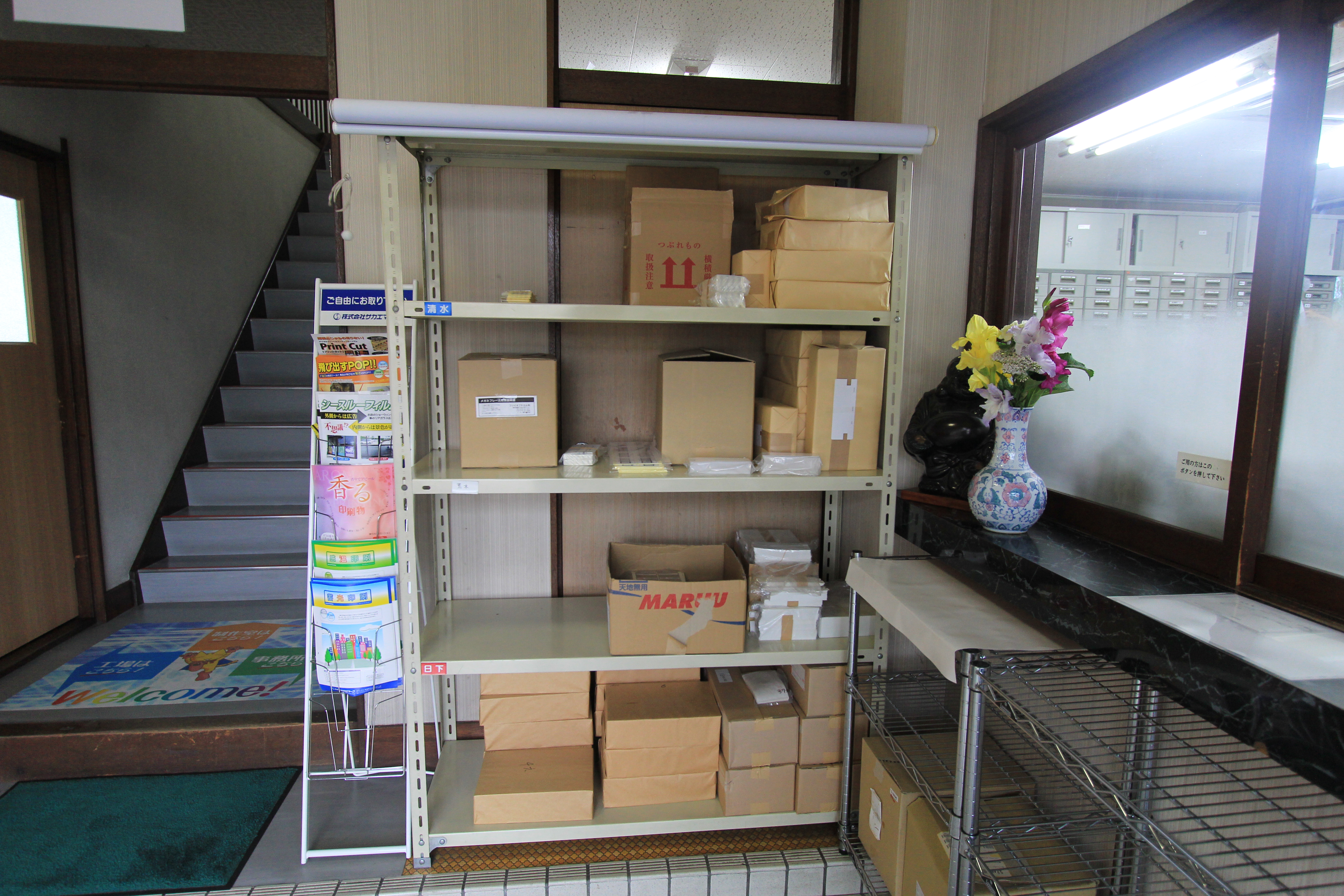 このように玄関に入ったときに丸見えの在庫棚があるのですが…![]()