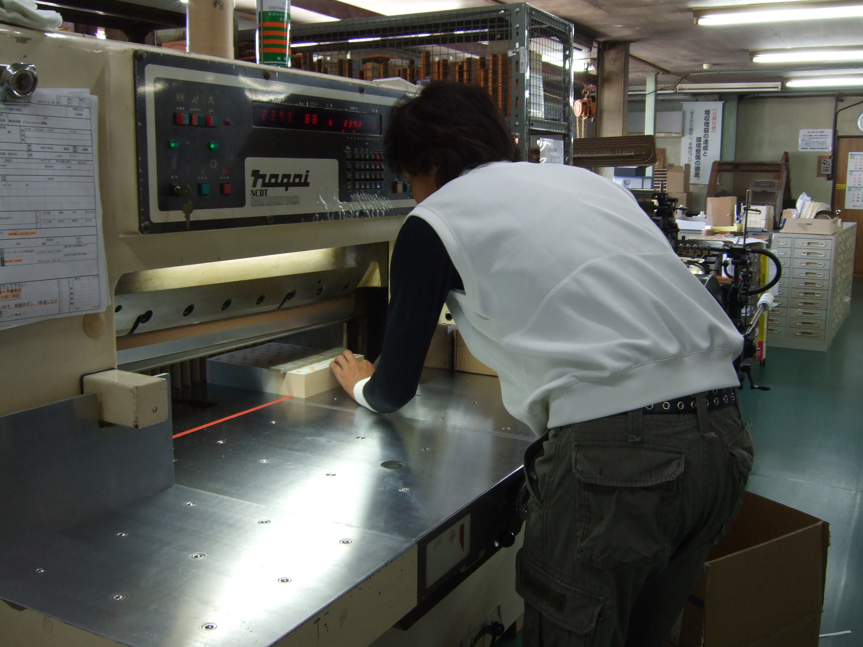 断裁という仕事は、簡単なようで実は奥が深い作業であると感じています。任された印刷物の仕上がりを丁寧に、そして怪我のないように自分の身を守ることも必要です。紙を切るという簡単そうに見える作業こそ、細やかな目をくばり調整していくことが必要です。
