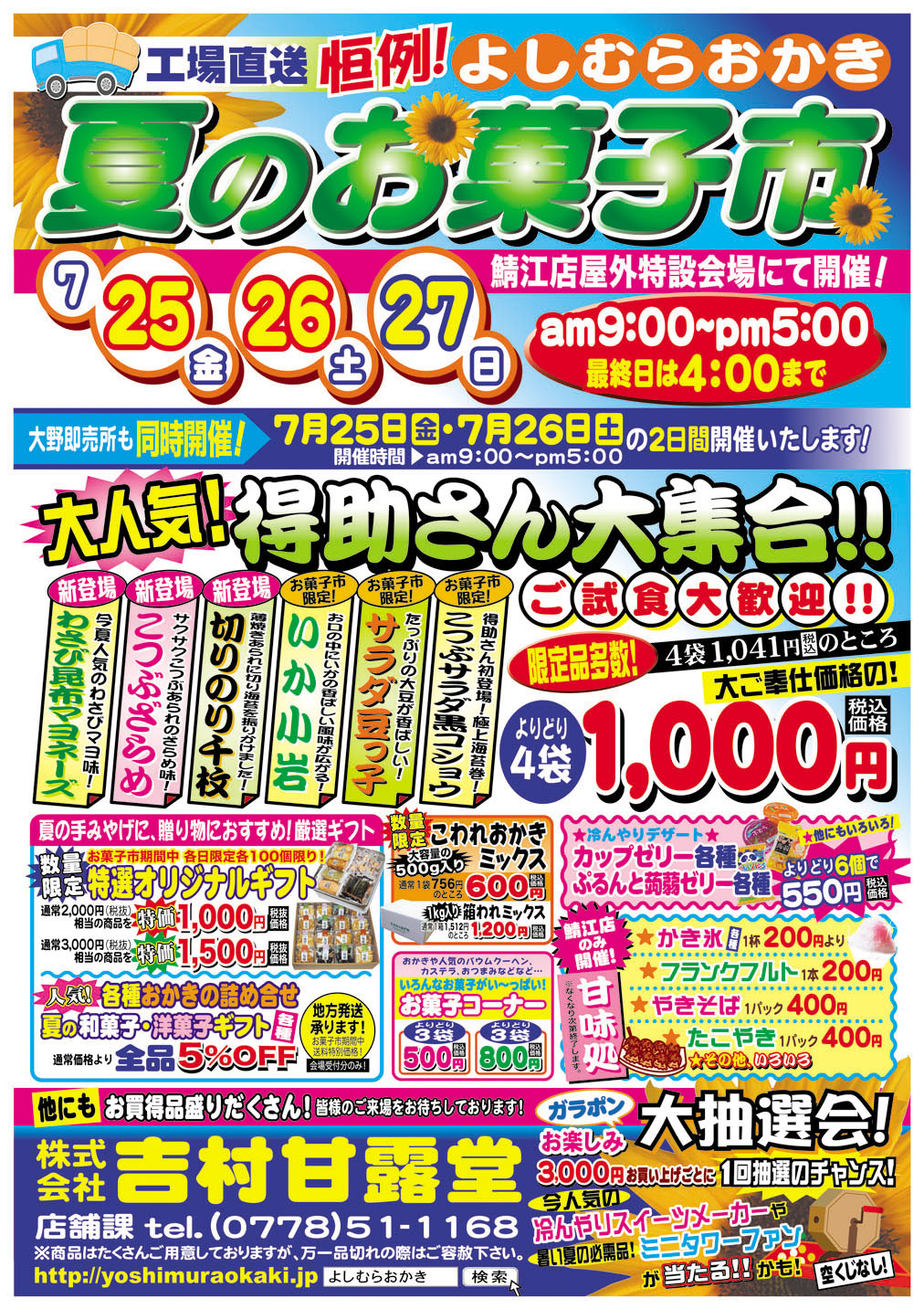 いつもお手伝いをさせて頂いているよしむらおかき様で夏のお菓子市が始まりました!