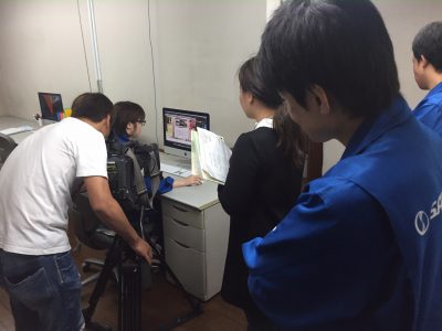 カメラを前に社長も社員も緊張の汗が・・・