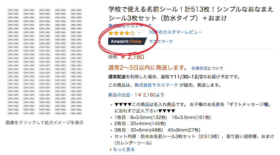 我が社のAmazon人気商品、お名前シールに「Amazon’s Choice」のバッヂがつきました!