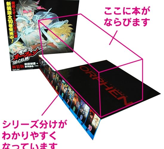 ティー・オー・エンタテインメント様より魔術士オーフェン新装版の発売に伴いご注文いただいた、巻数POPです。シリーズ構成の区別と、書店で見つけやすくするためのPOPを兼ねています。