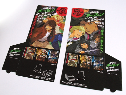 魔術士オーフェン新装版の販促POPです。こちらは書店の平台に立てて使えるPOPです。