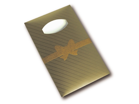 ジュエリーをパッケージするということでゴールド系の用紙を使い、豪華な印象を与える仕上がりにしています。