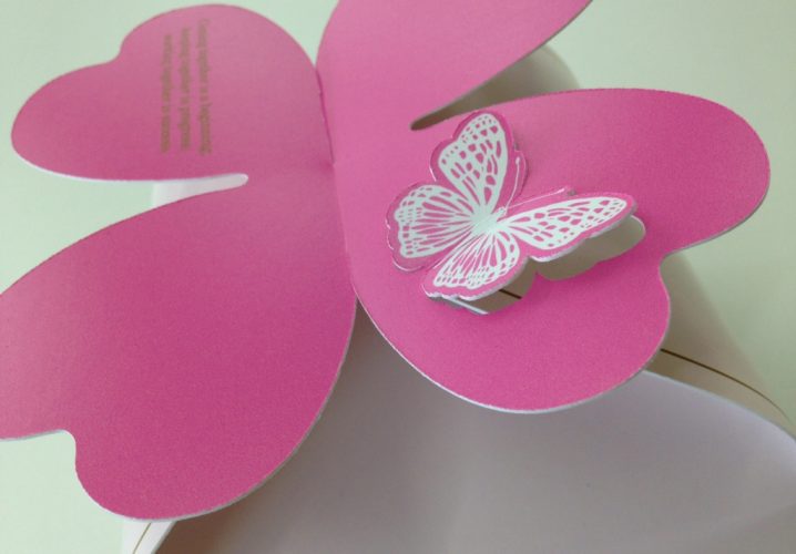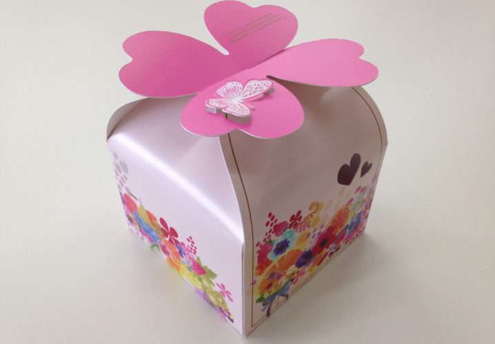側面にはハート型の窓、上部の花びらには蝶を形どった型抜きをしてみました。