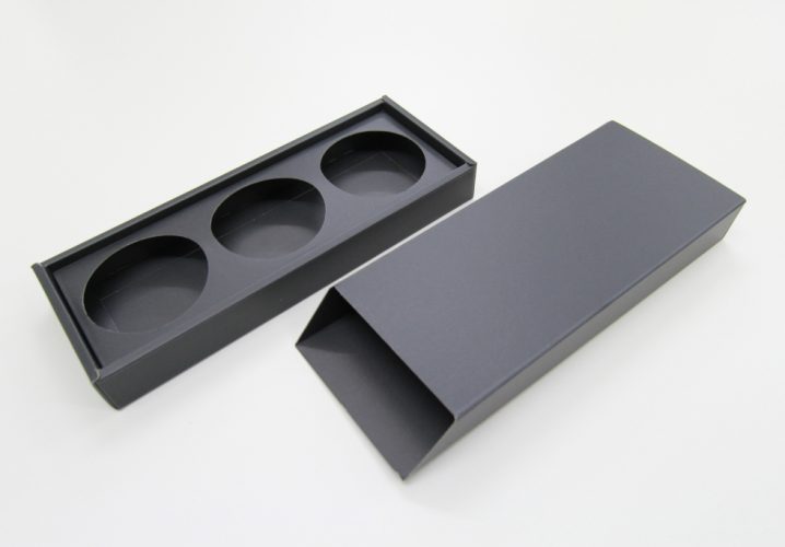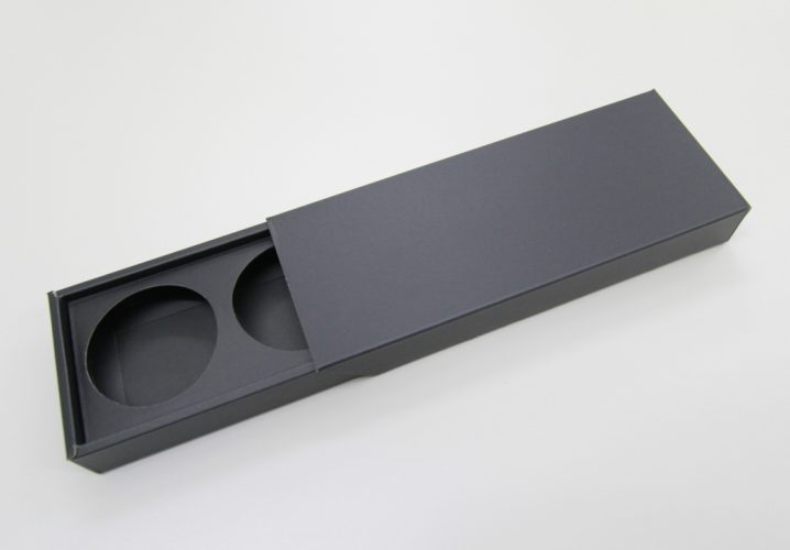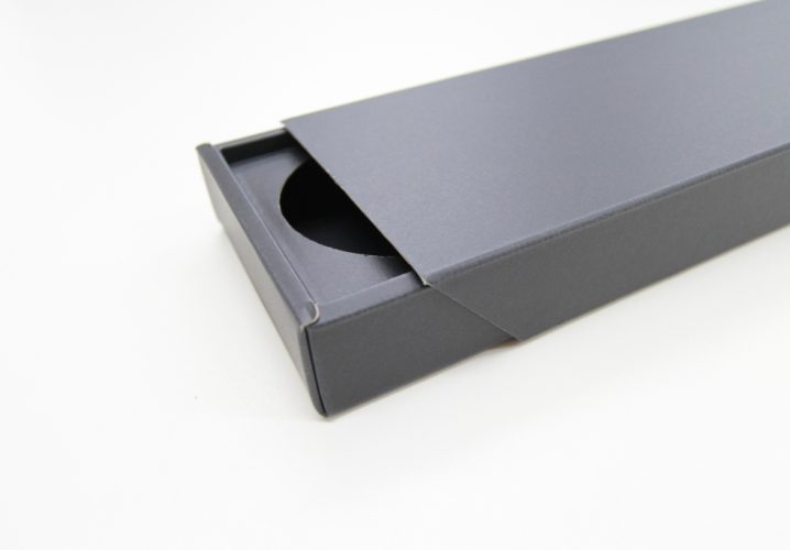 片方にフタが付いたスリーブタイプなので閉じた時に中身を出しやすいよう、斜めにカットしてあります。