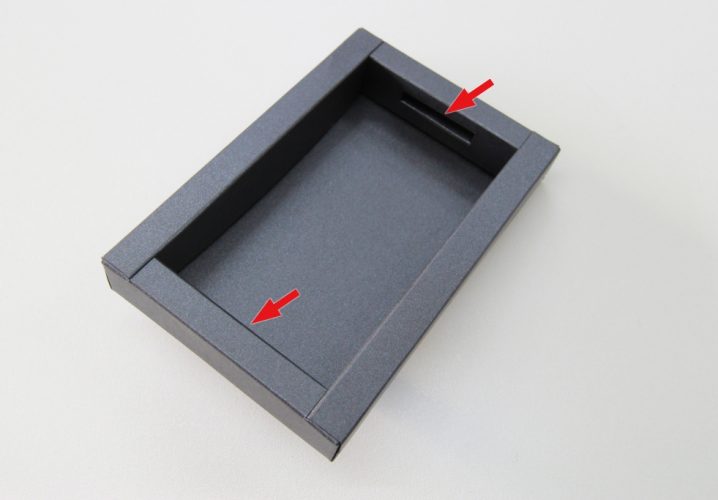 形状はスリーブタイプにし、靴べらは中にある溝に天地をひっかけて固定します