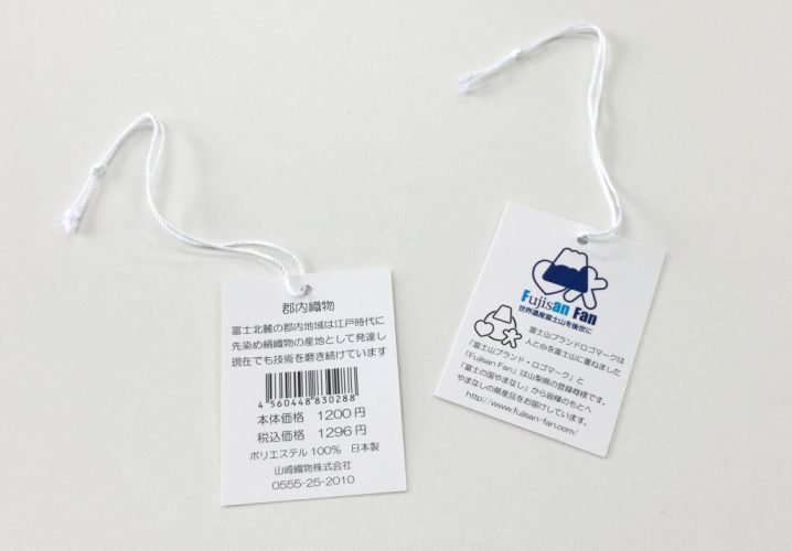 山崎織物株式会社様からご注文いただきました、商品に取り付けるタグです。