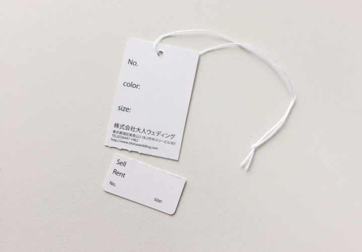 株式会社大人ウェディング様からご注文いただきました、ドレスにつけるタグです。