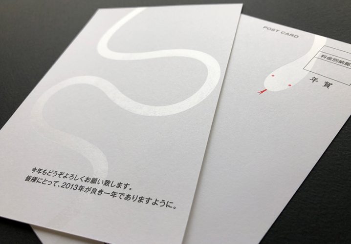 ハガキの両面にわたってヘビの模様がにょろにょろ…。(画像が見えにくくてすみません…)