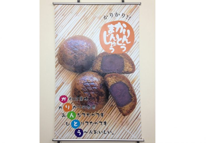 ターポリンに印字し、上下にアルミのタペストリーバーを付けています。