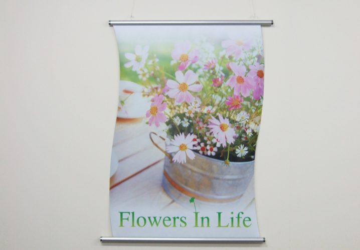 上下にアルミバーを付ければちょっと変わったタペストリーの完成です。
