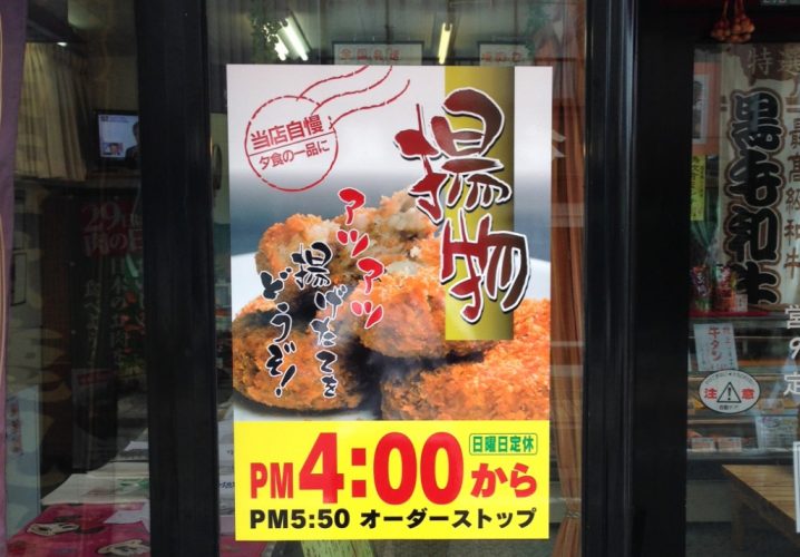 夕方の買い物時間に合わせてできたての揚げ物をアピールするポスターです。