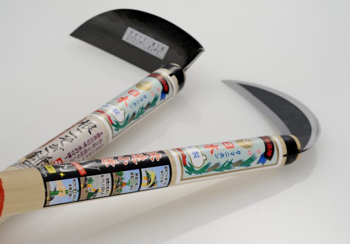 様々な種類の鎌やその他の刃物の柄やパッケージに貼るシールです。