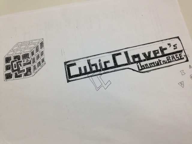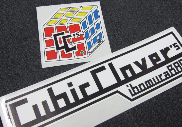 手書きの原稿(画像2枚目)をFAXでいただき、キューブのデザインの方は手書き感を残し、横長のステッカーは綺麗に仕上げて欲しいというご要望で、弊社でデータを起こしました。(手書きでの入稿も大歓迎です!)