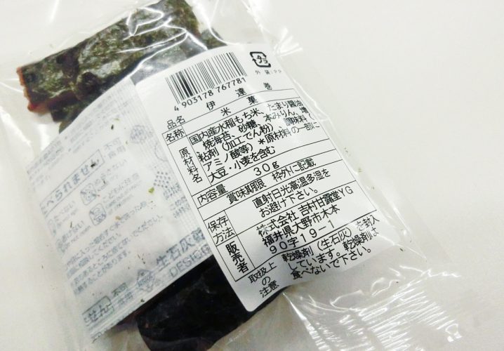 吉村甘露堂様よりご注文いただきました、おかき用表示シールです。