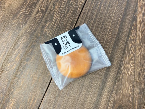 まるで牛が美味しそうにパクリ!とお饅頭にかぶりついている様なキュートなデザイン。