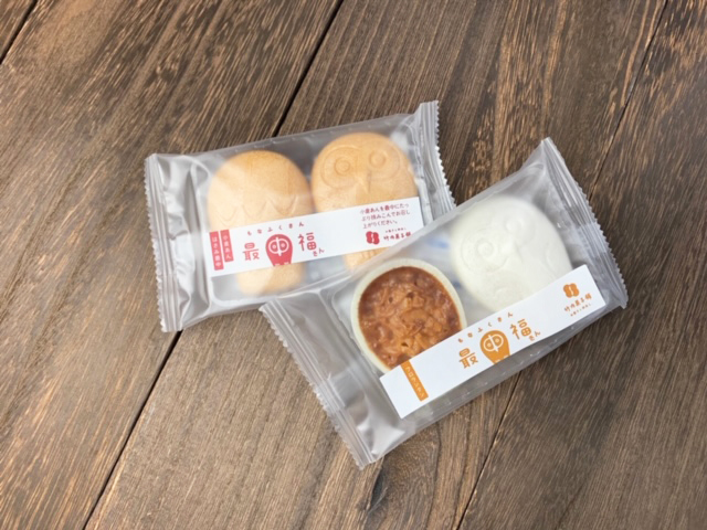 かわいいフクロウの形をした最中のパッケージシールは