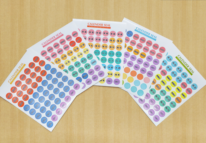 5枚1セットで同じ色のものでも、模様を変える事によりシールのパターンを作っています。