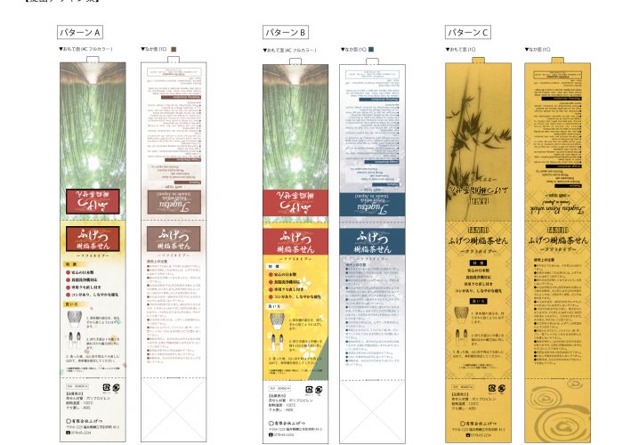 商品の背面に来る場所には、茶の間をイメージした竹のイラストを、そこ面にはお抹茶をたてたときの波紋のイラストを配置。