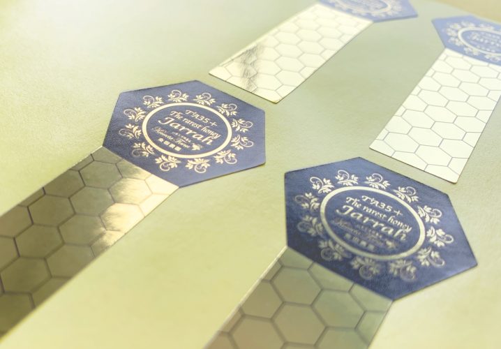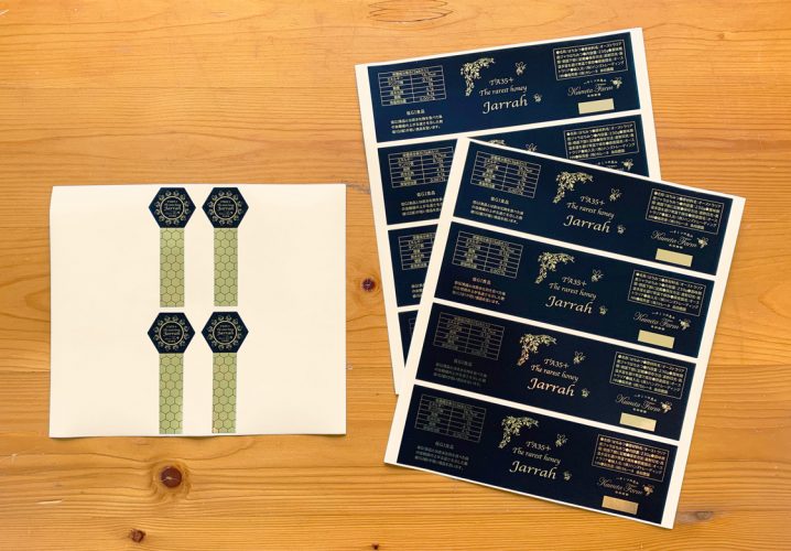 株式会社セレーネ 粂田農園様よりご依頼いただきました、はちみつ瓶用の封留めシールと側面シールです。