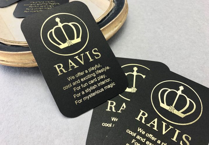 マットでツヤのない紙に、ツヤ金箔を加工すると表面のツヤの違いで箔押しの高級感がより引き立ちます。