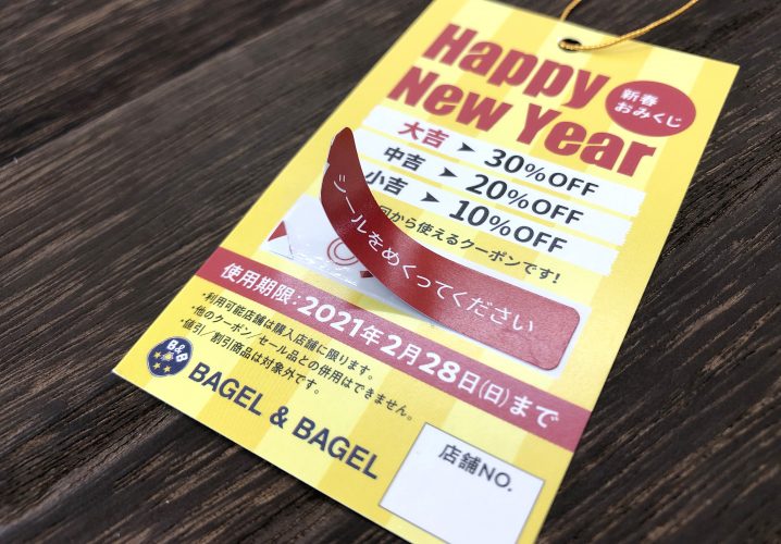 このおみくじ付きシールタグは福袋に付けたそうで、印字された内容によって30%OFF、20%OFF、10%OFFの割引が適用されるクーポン券になるそうです。