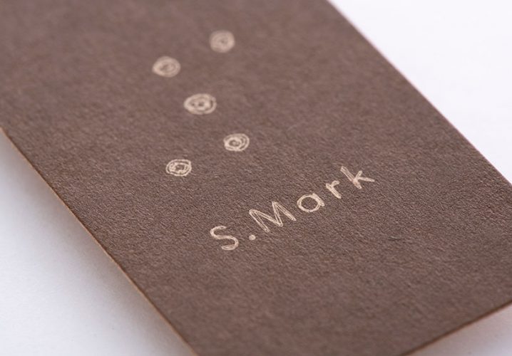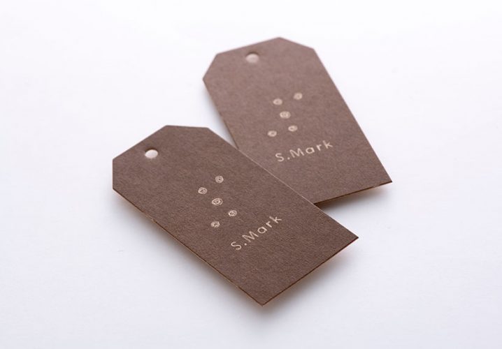 荷札風の形状に、モダンクラフト紙を使用して茶色ベタ印刷を行いました。