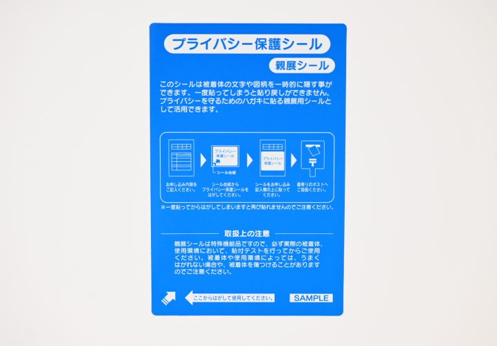 専用の親展シールに、プライバシー保護シールの説明も含めてわかりやすく印刷しました。