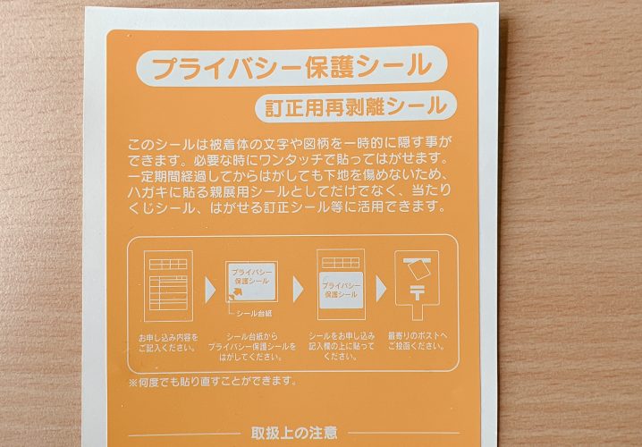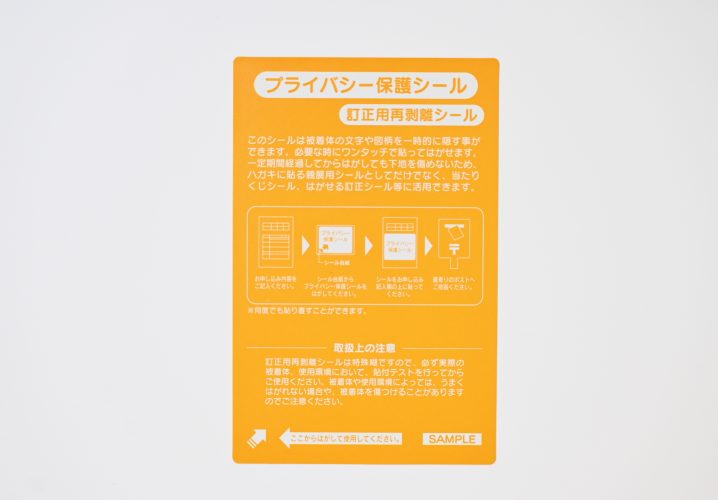 個人情報保護用のシールの再剥離タイプのサンプルです。