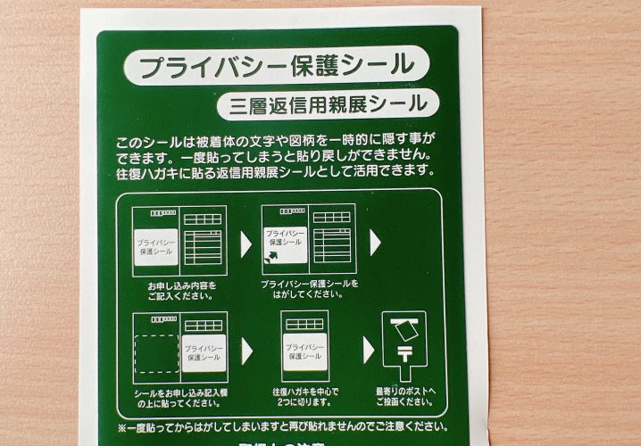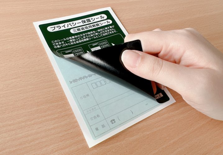 シールが三層になっている返信ハガキ向けの個人情報保護シールです。