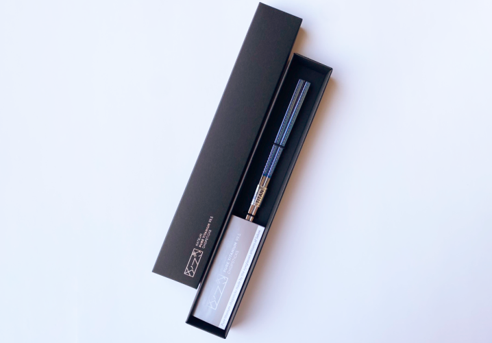 めがねの材料の純チタンを使って、めがね製造の技術で作ったお箸のパッケージを作成しました。