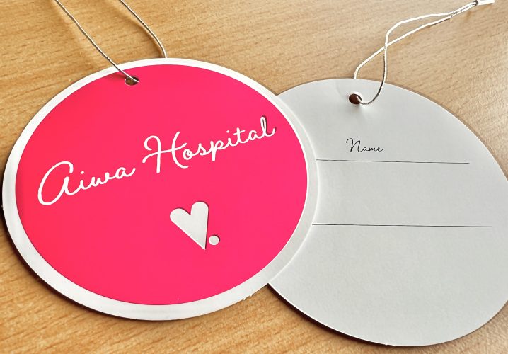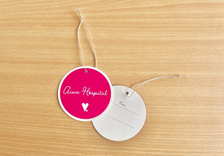 下げ札の作成だけでなく、銀ゴムの紐通しまで一括して当社で対応いたしました。