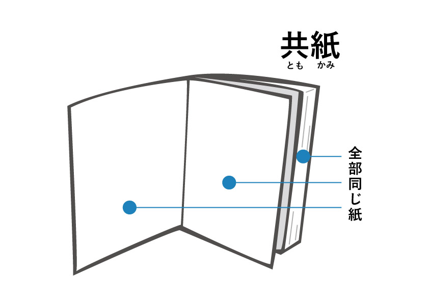 共紙(ともがみ)とは、印刷や製本の際に、表紙やカバー、裏表紙などに本文と同じ紙を使用することを指します。通常、本やパンフレット、冊子のカバーには、本文とは異なるデザインや質感の紙が使われることが多いですが、共紙の場合は、統一感を持たせるために、本文と同じ紙でカバーなども作成されます。