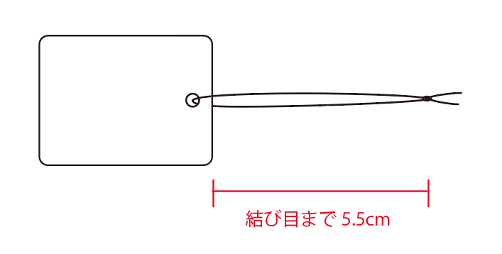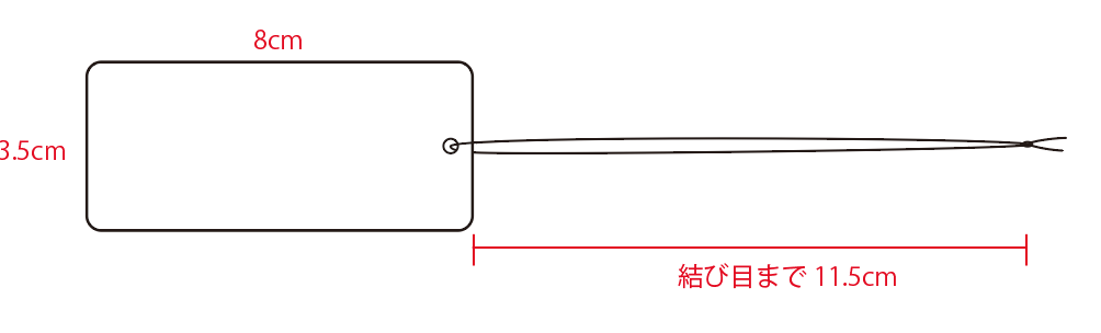 このタグの場合、8cmx3.5cmのサイズなので結び目まで11.5cmは必要となります。