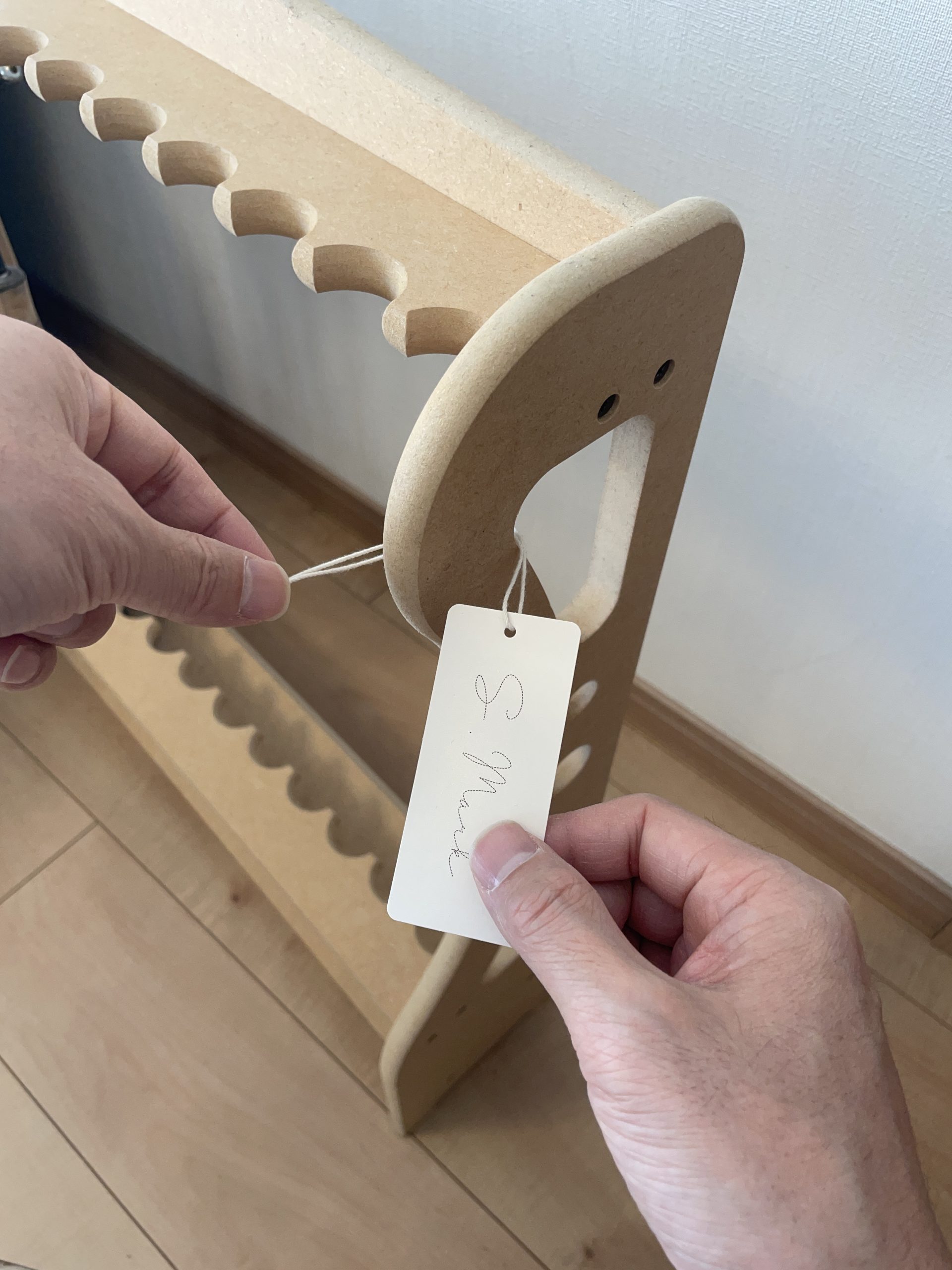 また、紐通しの場合でもタグは回転しづらくなるというメリットがあります。