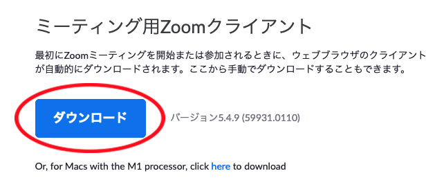 「ミーティング用Zoomクライアント」のダウロードボタンを押下してください。
