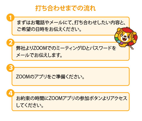 という方のためにZOOMでの打ち合わせに対応致しました。