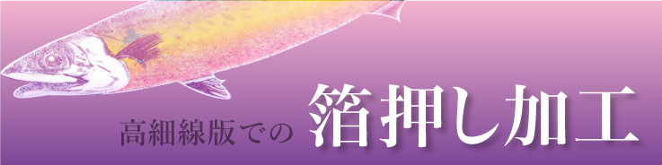 誰でも一度は見たことがある箔押し加工。箔用の金属板を使い、フィルム状の箔を熱で印刷物に押し付けてくっつけていく加工です。箔の色、種類も豊富で目を引きますね。主に金・銀の箔押しですが、今回は箔押し後にカラー印刷をすることで、違った箔沿いの魅力を引き出すことに挑戦しています。