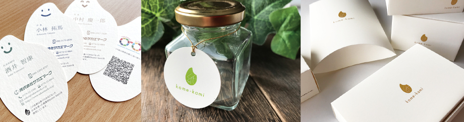 kome-kamiは名刺、タグ、カード、パッケージ、冊子など、通常の印刷紙として使えます。