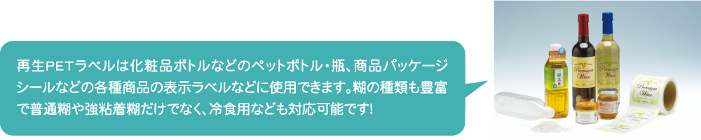 再生PETラベルは、使用済みPETボトルを原料にした環境配慮型のラベル素材です。