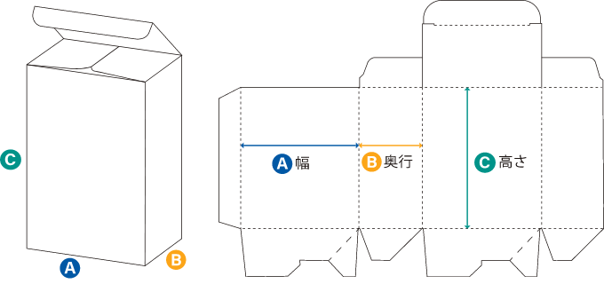 その名の通り、折りたたんだ状態から箱を起こすと自動で底面が組み立てられる箱です。2箇所を糊付けしてあるので重量物に強い構造になっています。上面はキャラメル箱と同じ形状になります。